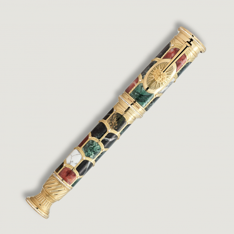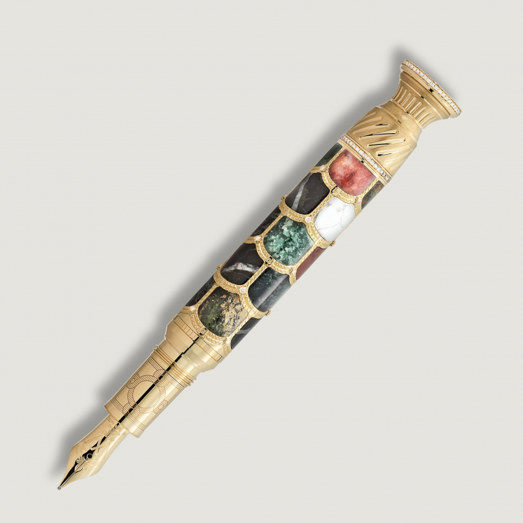 Versailles et le roi Louis XIV – indissociables jusqu'à aujourd'hui. Le goût du roi pour le grandiose se manifeste non seulement dans l'ampleur du château et ses jardins somptueux, mais surtout dans les 2 300 pièces de la résidence royale. Le mobilier et les décorations raffinés, réalisés à partir des matériaux les plus nobles, incarnent le style et la splendeur royaux. Le château de Versailles est plus qu'un simple bâtiment, c'est une œuvre d'art baroque à part entière, où l'architecture, l'aménagement des jardins et les arts décoratifs s'harmonisent à la perfection. Louis XIV rêvait de transformer l'ancien pavillon de chasse de son père en une résidence monumentale et en un centre du pouvoir politique et de la vie culturelle en France. Avec la collection « A Journey through Château de Versailles », Montblanc propose une visite guidée de ce chef-d'œuvre baroque afin de célébrer le site de Versailles, classé au patrimoine mondial. Le Limited Edition 18 met en valeur les œuvres élaborées en marbre qui ornent le palais et est habilement réalisé à partir de cette pierre rare. Sous Louis XIV, cette roche précieuse est devenue synonyme de splendeur baroque. Seul le marbre de la plus haute qualité provenant des Pyrénées, du Languedoc, de Provence et de Rance, sculpté à la perfection, pouvait satisfaire les exigences rigoureuses du Roi Soleil. Les blocs géants de marbre massif, souvent transportés dans des conditions très difficiles jusqu'à l'atelier royal, étaient taillés et polis pour embellir l'ensemble du complexe du palais, notamment la magnifique salle d'Hercule, le Grand Trianon, la galerie des Glaces, les appartements d'apparat et les jardins royaux. Le château de Versailles est devenu une ode à la beauté du marbre. Afin de mettre en valeur ses différentes variétés, les marbriers royaux ont fabriqué des tables dites « marmothèques », ornées de mosaïques polychromes élaborées composées de divers spécimens disposés côte à côte. Inspirée par ces meubles précieux et rares, le Limited Edition 18 est recouvert d'une mosaïque unique d'incrustations représentant la large gamme de marbres présents dans le château. Les montures en or massif Au 750/1000 ornées de diamants offrent un contraste esthétique très agréable. Il est même possible d'identifier les différents types de marbre grâce à des numéros de code incrustés. Indiquant leur origine dans le domaine de Versailles, les meubles portent les lettres « VV », tout comme la plume en or massif Au 750/1000 fabriquée à la main de l'instrument d'écriture. Elle est en outre ornée d'une gravure représentant précisément cette marque ainsi que la couronne royale. Une décoration récurrente dans le palais est le majestueux monogramme double L composé de deux lettres entrelacées en miroir – le sceau personnel de Louis XIV, que le roi utilisait exclusivement pour sa correspondance privée. Ce « Chiffre du Roi », le code secret du roi Louis XIV, symbolise comme nul autre l'épanouissement du style baroque et le luxe inhérent à la culture de la cour française de l'époque. Le sceau figure également dans cette édition : le cône en or massif Au 750/1000, artistiquement orné d'une bande de diamants, prend la forme d'un cachet et peut ainsi être utilisé pour sceller la correspondance privée. Le sceau royal n'était pas la seule caractéristique notable de la correspondance du roi. Le secret étant un élément central du pouvoir à la cour, le Roi Soleil utilisait des systèmes de cryptage spéciaux à base de lettres et de chiffres, appelés « Grand Chiffre » et « Petit Chiffre ». Ils préservaient la confidentialité de ses communications militaires et diplomatiques tout en créant une aura d'exclusivité et de mystère. Le Limited Edition 18 dégage une atmosphère mystérieuse similaire : il contient son propre « message secret ». Sous l'emblème Montblanc, composé de diamants sertis en pavé et entouré de marbre, le capuchon renferme un compartiment caché qui s'ouvre pour révéler les codes 070 et 479. Ceux-ci représentent nul autre que le roi lui-même : « Sa Majesté Le Roy ».