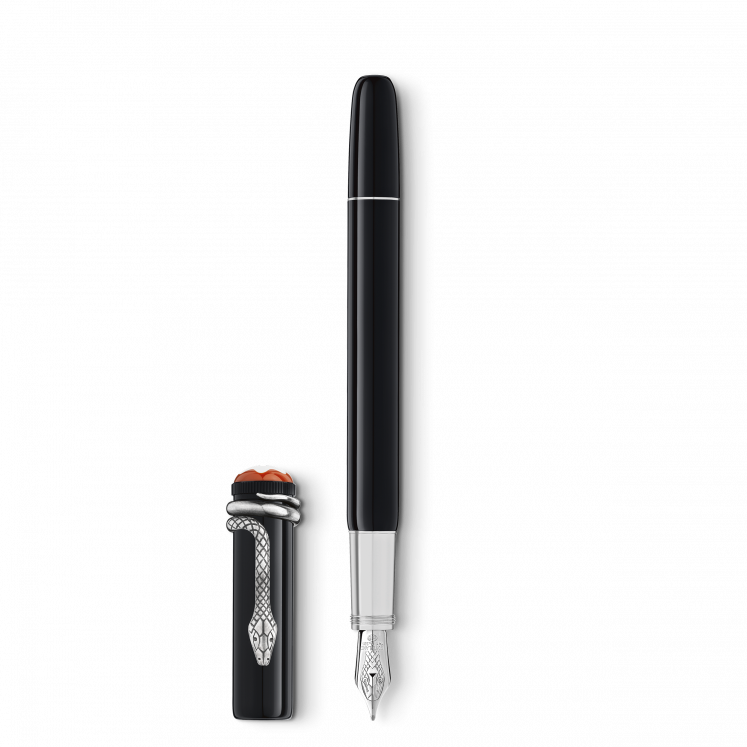 • Capuchon : Résine précieuse noire avec emblème Montblanc en résine corail et ivoire