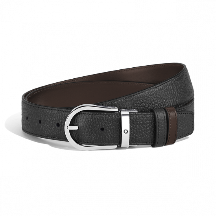 Rehaussez votre style avec le contraste distincitf de cette ceinture réversible en cuir de 35 mm. D'un côté, le cuir grainé noir offre une texture douce et tactile, tandis que l'envers présente l'élégance lisse et raffinée du cuir ébène Meisterstück. La largeur de 35 mm lui confère une allure affirmée, rehaussée par une boucle ardillon sophistiquée au fini palladium brillant. Cet accessoire polyvalent rehaussera toutes vos tenues d'une touche de caractère.