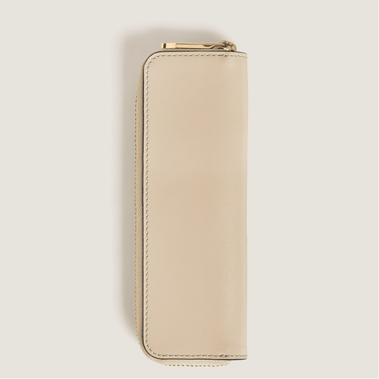 Conçu pour accueillir un stylo de la taille du Meisterstück Classique ou Le Grand, cet étui est un accessoire élégant pour transporter ou ranger votre instrument d'écriture préféré en toute sécurité. Fabriqué en cuir lisse en beige nuage, il est doté d'une tirette de fermeture éclair en forme de plume, rendant hommage à l’héritage de Montblanc en matière d'écriture.