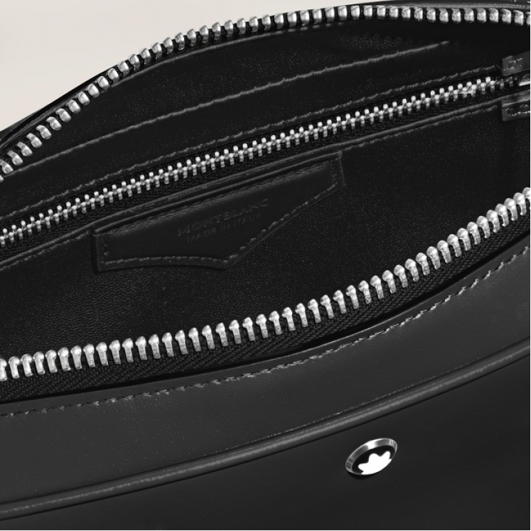 Découvrez le nouveau sac bowling élégant, confectionné en cuir Meisterstück noir lisse. Ce sac polyvalent offre un compartiment principal spacieux et une poche zippée pratique pour les petits objets essentiels. Doté de deux poignées supérieures et d'une bandoulière réglable et amovible, il allie sans effort fonctionnalité et élégance raffinée.