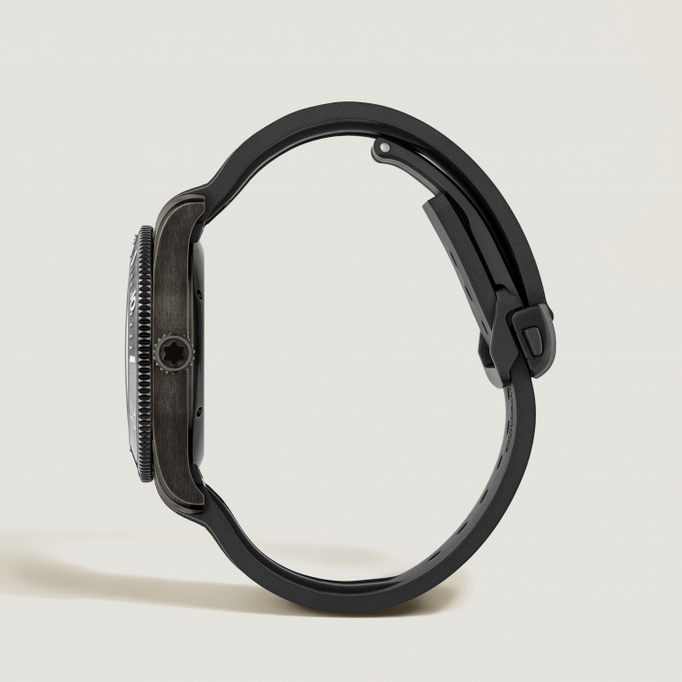 1La Montblanc Iced Sea Automatic Date 0 Oxygen, avec son cadran gris sfumato à motif glaciaire, donne l'impression de regarder dans les profondeurs d'un glacier. Inspirée de la Mer de Glace, cette texture glaciale a été réalisée à l'aide d'une technique ancestrale presque oubliée appelée gratté-boisé. La montre est logée dans un boîtier de 41 mm en acier vieilli totalement dépourvu d'oxygène et s'accompagne d'une lunette tournante unidirectionnelle avec insert en céramique noire abaissée au laser de 0 à 15 minutes, d'une gravure en 3D sur le fond du boîtier et d'un bracelet interchangeable en caoutchouc noir avec système d'ajustement fin. Cette montre est conforme à la norme ISO 6425 pour la plongée sous-marine, et se caractérise par une étanchéité à 300 m.